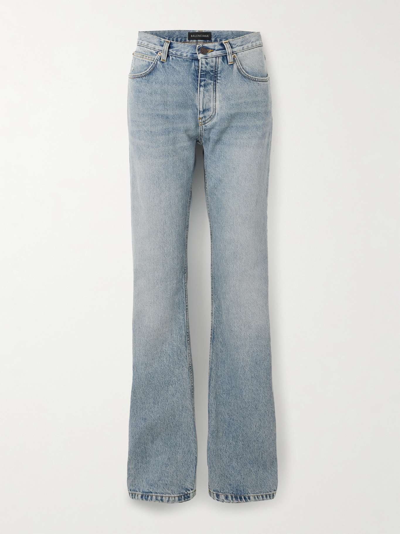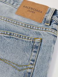 EDITORS'NOTES Balenciaga's jeans are reminiscent of '90s and '00s styles with their mid-rise, straight-leg fit. They're cut from pale-blue denim that's faded and subtly distressed and finished with a logo patch at the back. Style yours with one of the label's graphic T-shirts. SIZE & FIT Model measurements: - Fits large to size, take one size smaller than normal - Mid-rise, designed for a straight-leg fit - Mid-weight, non-stretchy denim - Size 25 jeans have an inside leg of 35"/ 88cm - Model is 177cm/ 5'10", normally wears a size 26 and is wearing a size 25 - Bust: 79cm/ 31" - Waist: 61cm/ 24" - Hip: 89cm/ 35" DETAILS & CARE - Light-blue denim - Partially concealed button fastenings along front - 100% cotton - Machine wash