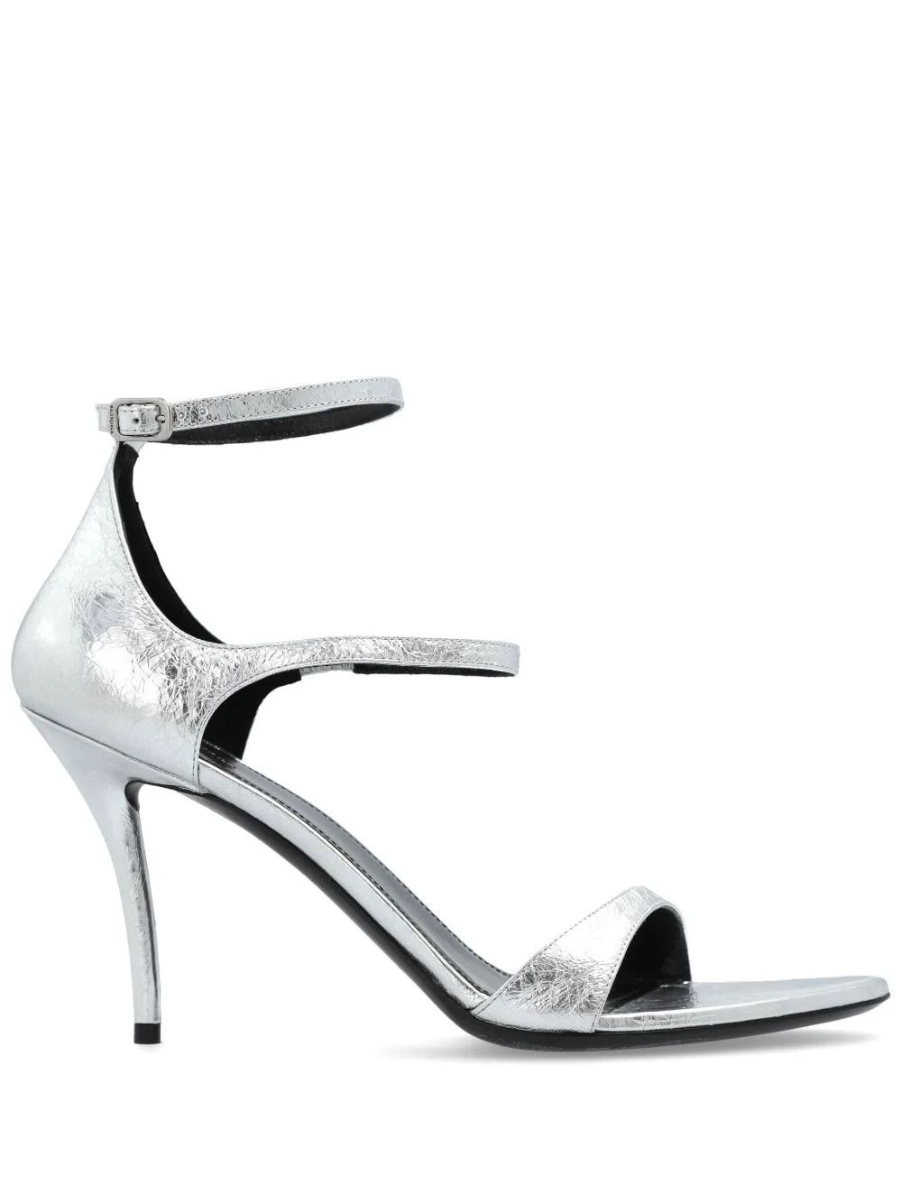 Honey metallic leather sandals Highlights - Silver-tone - Leather - Metallic effect - Pointed toe - Double-strap design - Buckle-fastening ankle strap - Branded leather insole - High sculpted heel Made in Italy Composition Outer: Lamb Skin 100% Lining: Leather 100% Sole: Leather 100%