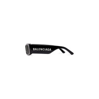 Max Rectangle Sunglasses in black Eastman Acetate Renew, an acetate alternative partially made of bio-based and recycled content, with grey lenses PRODUCT DETAILS • Temple length: 5,5 inch • Bridge length: 0,7 inch • Eastman Acetate Renew (40% bio-based, 27% recycled) • Rectangle shape • Smart fit • Balenciaga logo on the left temple • Lasered logo on the right lens • Lens material: CR 39 • Lens category: 3 • 100% UVA/UVB protection • Not suitable for optical conversion • Made in Italy • Wipe with a soft cloth • BB0260S Material: 100% acetate