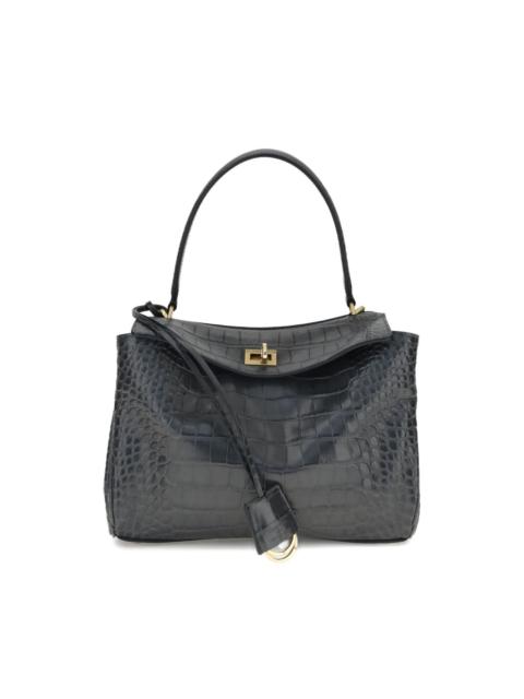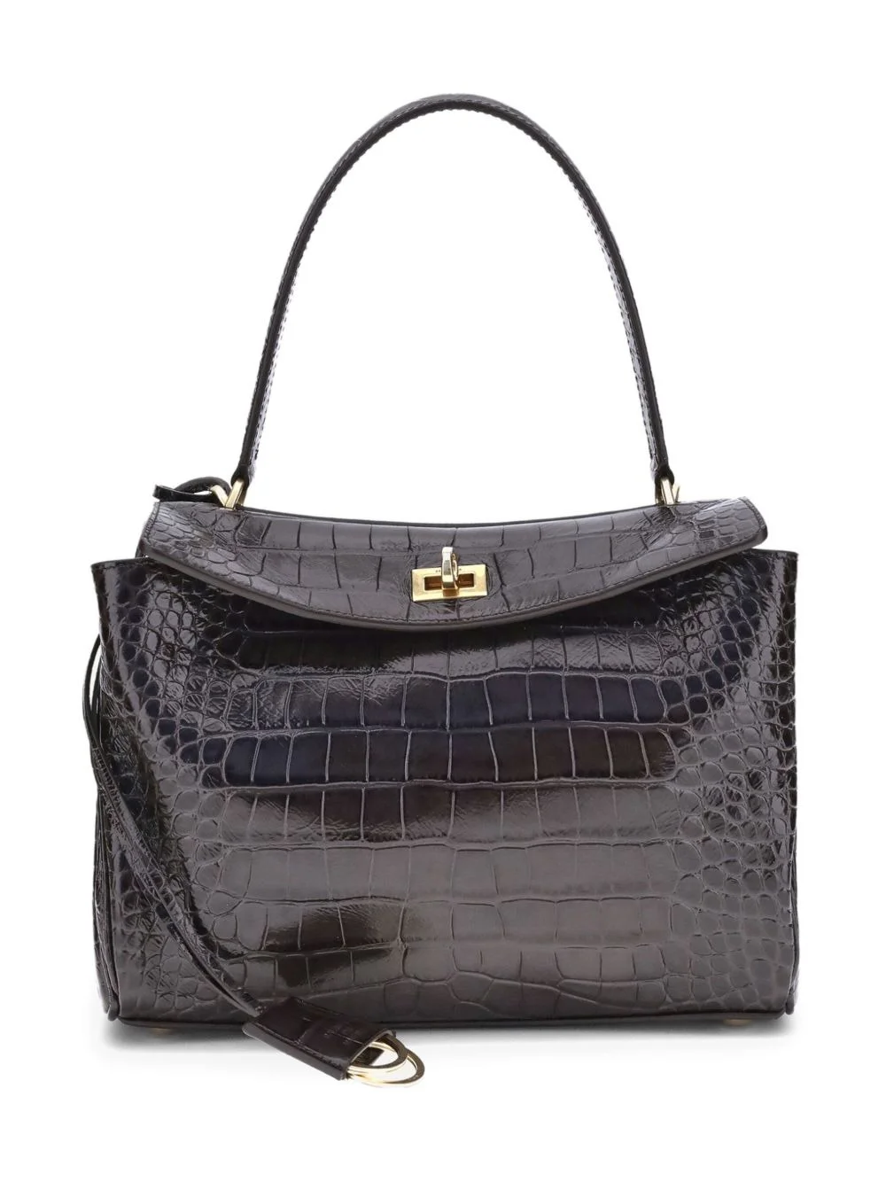 medium crocodile-effect shoulder bag Highlights - Dark brown - Crocodile effect - Top handle - Detachable shoulder strap - Fold-over flap - Push-lock closure Made in Italy Composition Outer: Calf Leather 100% SIZE & FIT Measurement DEPTH 3.93 in(10 cm) HEIGHT 7.87 in(20 cm) WIDTH 11.37 in(28.9 cm)