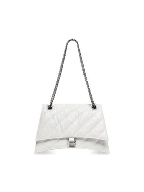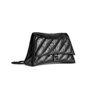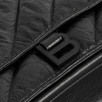 Crush Medium Chain Bag Quilted in black crushed calfskin, black matte hardware PRODUCT DETAILS • Dimensions : L12,2 x H7,8 x W2,7 inch • Crushed calfskin and quilted • Chain bag • Curvilinear base • Shoulder and crossbody chain strap (19,6 inch) • Black matte B logo hardware • Studded magnet closure • 3 compartments • 1 inner zipped pocket • 1 inner flat pocket • Nappa lambskin lining • Made in Italy • Wipe with a soft cloth Material: 100% calfskin