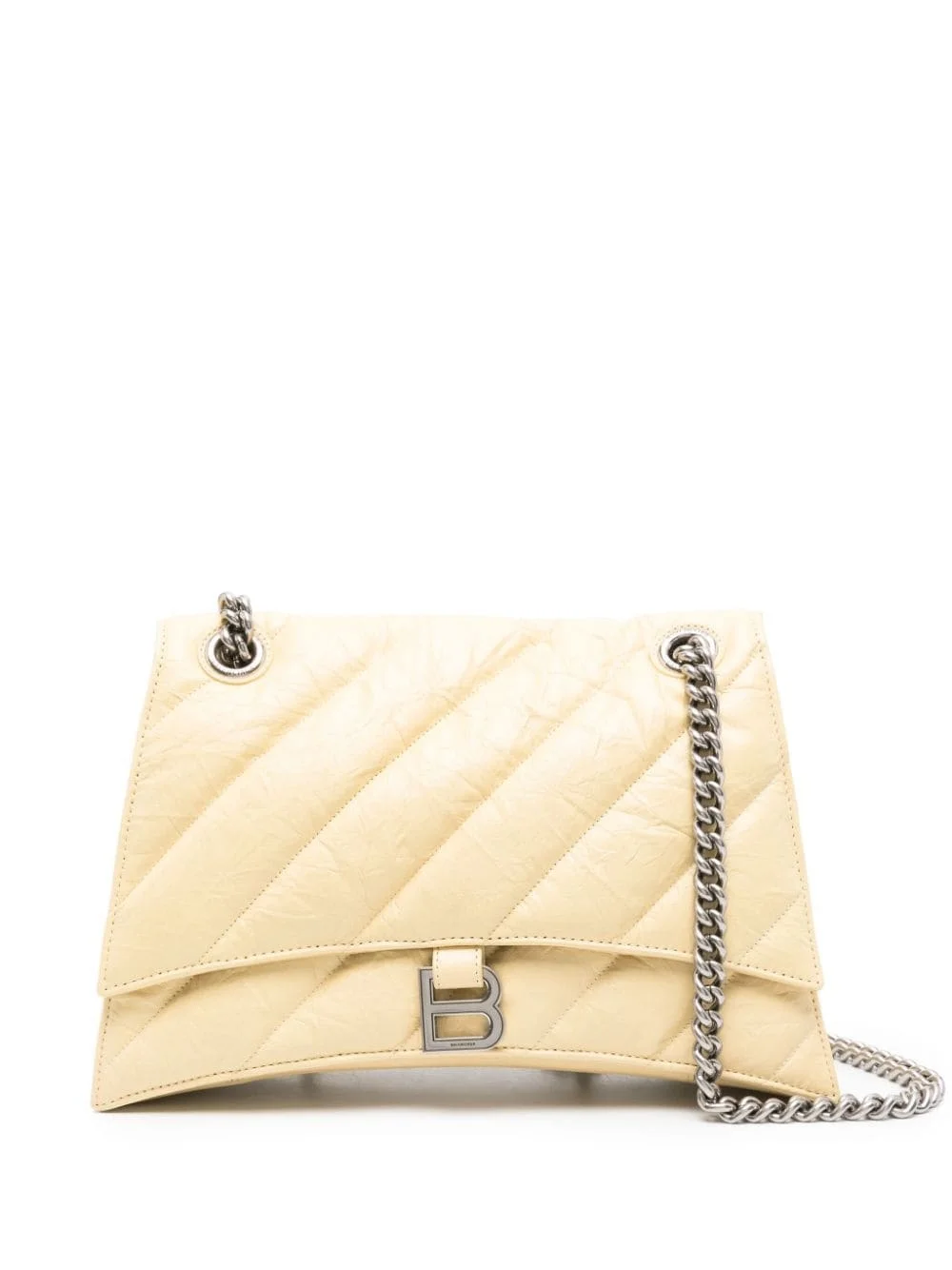 medium Crush leather shoulder bag Highlights - Light yellow - Calf leather - Crinkled finish - Padded design - Accordion design - Adjustable chain-link shoulder strap - Logo-engraved silver-tone hardware - B-logo plaque to the front - Partitioned compartment - Internal zip-fastening pocket - Internal logo stamp - Full lining - Silver-tone hardware - Foldover top with magnetic fastening - This piece comes complete with a protective dust bag. Made in Italy Composition Outer: Calf Leather 100% SIZE & FIT Model measurements Height 5 ft 10 in(1.78 m) Bust/Chest 31.49 in(80 cm) Hips 37 in(94 cm) Waist 23.62 in(60 cm) Measurement DEPTH 3.93 in(10 cm) HEIGHT 7.48 in(19 cm) WIDTH 12.2 in(31 cm)