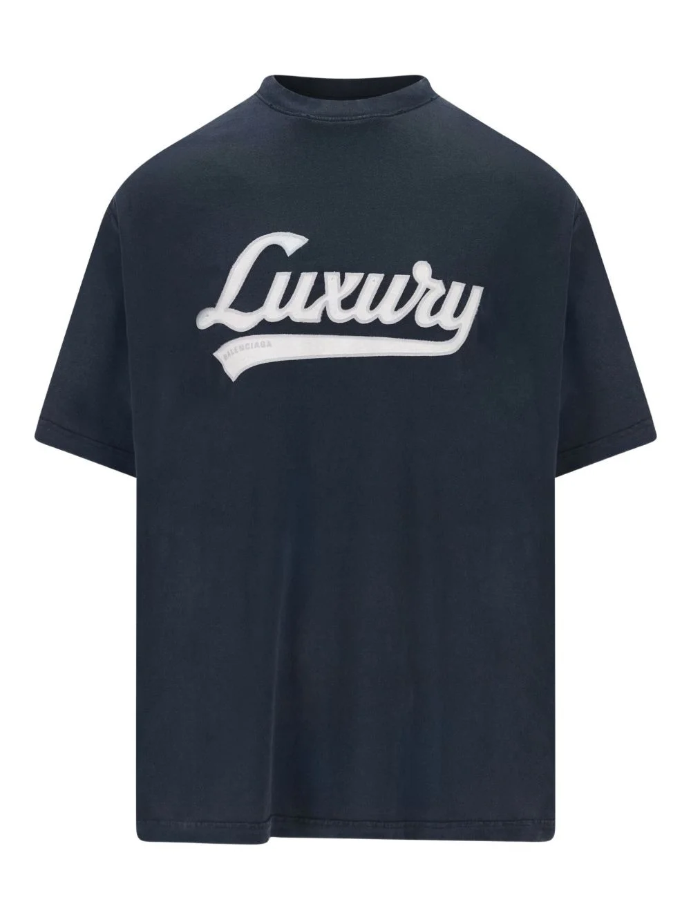 text-embroidered T-shirt Highlights - Navy blue - Crew neck - Short sleeves - Straight hem Imported Composition Cotton 100% Washing instructions Read Manufacturer Guidelines