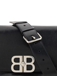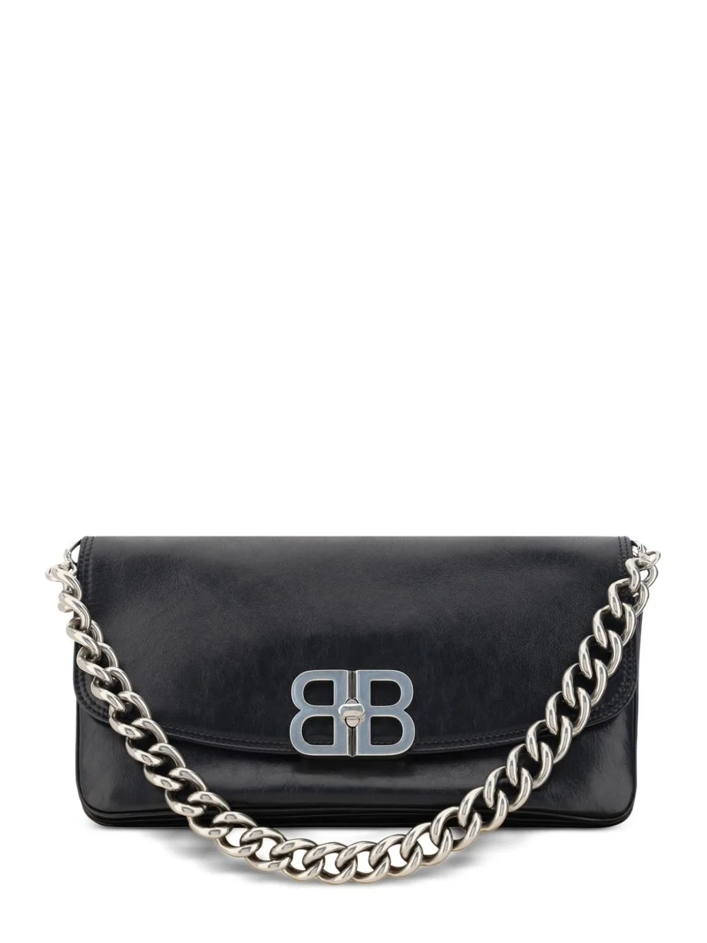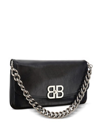 meduium BB Soft shoulder bag Balenciaga's BB Soft Flap bag blends softness and hardness. Crafted from smooth BLACK leather, it boasts a foldover top, twist lock fastening and a chain-link shoulder strap. Meanwhile, the metal silver-tone hardware and logo detailing juxtaposes against the supple, malleable material. Highlights - Black - Calf leather - Smooth grain - Accordion design - Silver-tone logo plaque - Foldover top - Twist-lock fastening - Chain-link shoulder strap - Adjustable detachable shoulder strap - Full lining - Internal logo stamp - Internal zip-fastening pocket - Main compartment - Silver-tone hardware - This piece comes complete with a protective dust bag. Made in Italy Composition Outer: Calf Leather 100% SIZE & FIT Measurement DEPTH 1.2 in(3 cm) HANDLE 7.5 in(19 cm) HEIGHT 6.7 in(17 cm) STRAP 19.7 in(50 cm) WIDTH 11.8 in(29.9 cm)