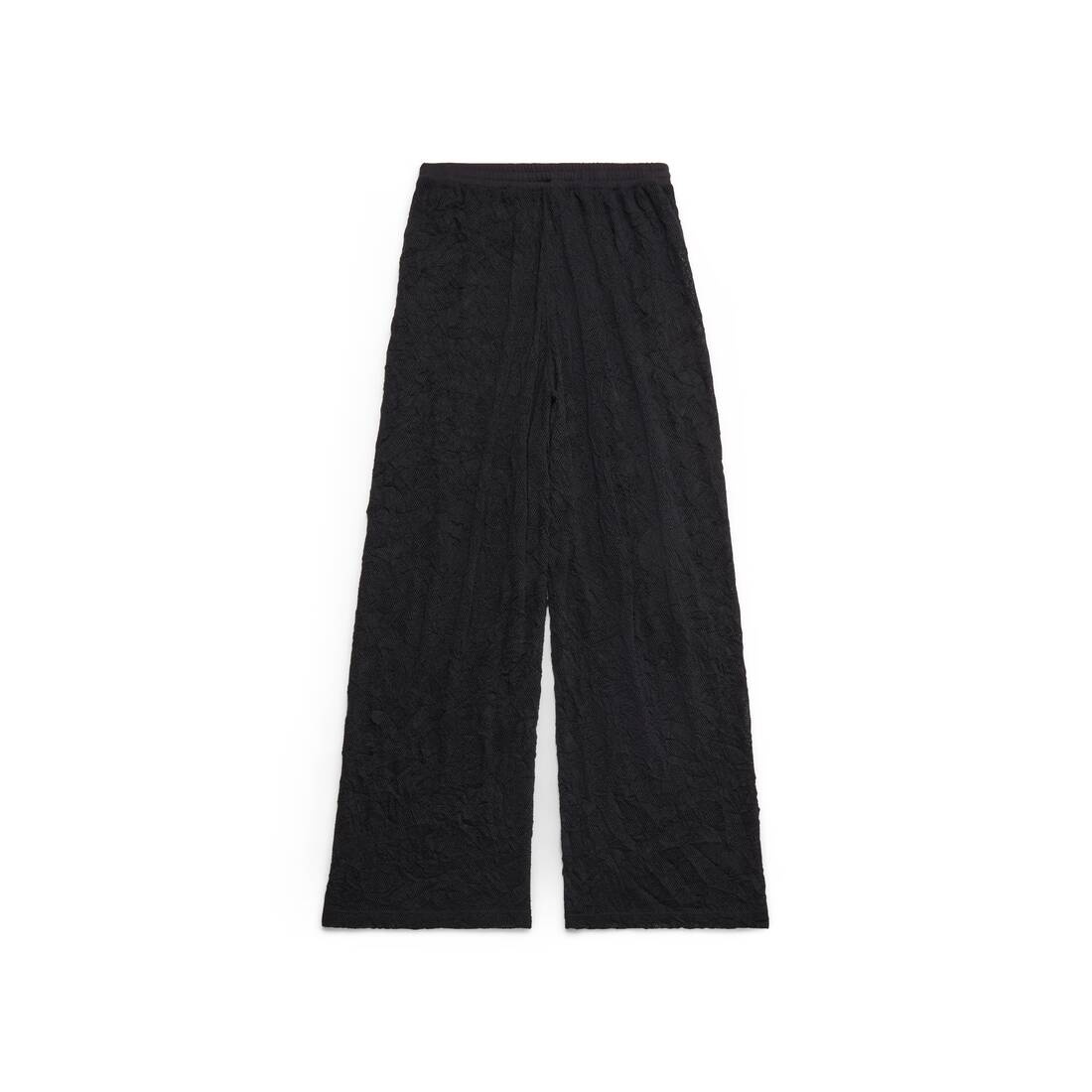 Mesh Baggy Sweatpants in black crinkled cotton mesh PRODUCT DETAILS • Crinkled cotton mesh • Regular fit • Slightly transparent fabric • High waist • Elasticated waistband • Crinkled effect • Made in Portugal • Dry cleaning • Model is 174 cm / 5'8" and is wearing a size S Material: 65% polyester, 35% cotton