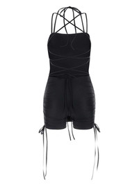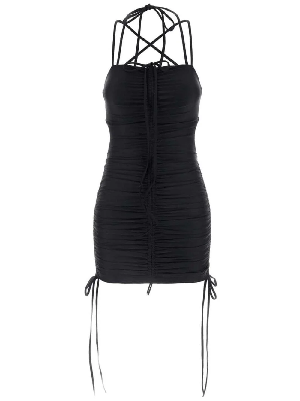 ruched mini dress Highlights - Black - Stretch-design - Jersey texture - Ruched detailing - Thigh-length - Tie-fastening straps - Drawstring neck - Sleeveless - Open back - Drawstring hem Made in Italy Composition Polyamide 80%, Elastane 20% SIZE & FIT Measurement HIPS 27.99 in(71.1 cm) LENGTH 27 in(68.6 cm) WAIST 15.98 in(40.6 cm) BUST 24.01 in(61 cm)
