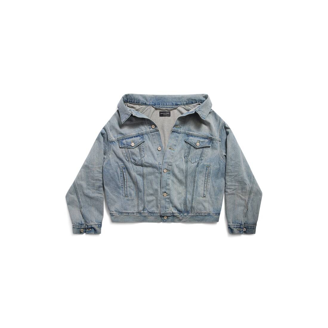 Off Shoulder Jacket in light blue organic selvedge denim is from look 78 of Balenciaga Summer 24 Collection. PRODUCT DETAILS • Selvedge denim • This item is unisex • Large fit • Multiple styling possibilities • Designed to be worn off the shoulder • 6 button front • 2 buttoned pockets at chest • 2 slash pockets • Buttoned cuffs • Adjustable buttoning at waist • Balenciaga engraved flex buttons • Made in Japan • Dry cleaning Material: 100% cotton