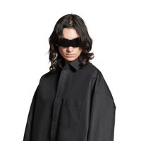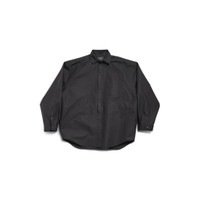 Outerwear Shirt Large Fit in black cotton poplin is from look 26 of Balenciaga Fall 24 collection. PRODUCT DETAILS • Cotton poplin • This item is unisex • Shirt collar • 7 snap front • 1 patch pocket at chest • Long sleeves • Snap cuffs • Rounded hem • Balenciaga engraved buttons • Made in Italy Material: 100% cotton