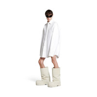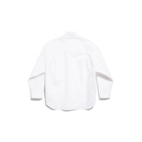 Outerwear Shirt Large Fit in white cotton poplin is from look 24 of Balenciaga Fall 24 collection. PRODUCT DETAILS • Cotton poplin • This item is unisex • Shirt collar • 7 snap front • 1 patch pocket at chest • Long sleeves • Snap cuffs • Rounded hem • Balenciaga engraved buttons • Made in Italy Material: 100% cotton