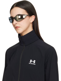 Wraparound cat-eye metal-frame sunglasses in black. · Mirrored gray lenses · Logo etched at lens · Adjustable rubber nose pads · Acetate temple tips · Includes case · Size: 93.14 110 Supplier color: Black Metal, acetate. Made in Italy 252342F005018
