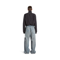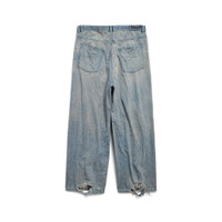 Oversized Baggy Pants in light blue organic selvedge denim are from looks 68 and 78 of Balenciaga Summer 24 Collection. PRODUCT DETAILS • Selvedge denim • This item is unisex • Oversize fit • Mid-waist • Drawstring waist • Covered button fly • 5 belt loops • 5 pockets • Balenciaga engraved flex buttons • Balenciaga inlaid patch at back • Destroyed effect at hem • Made in Japan • Dry cleaning Material: 100% cotton