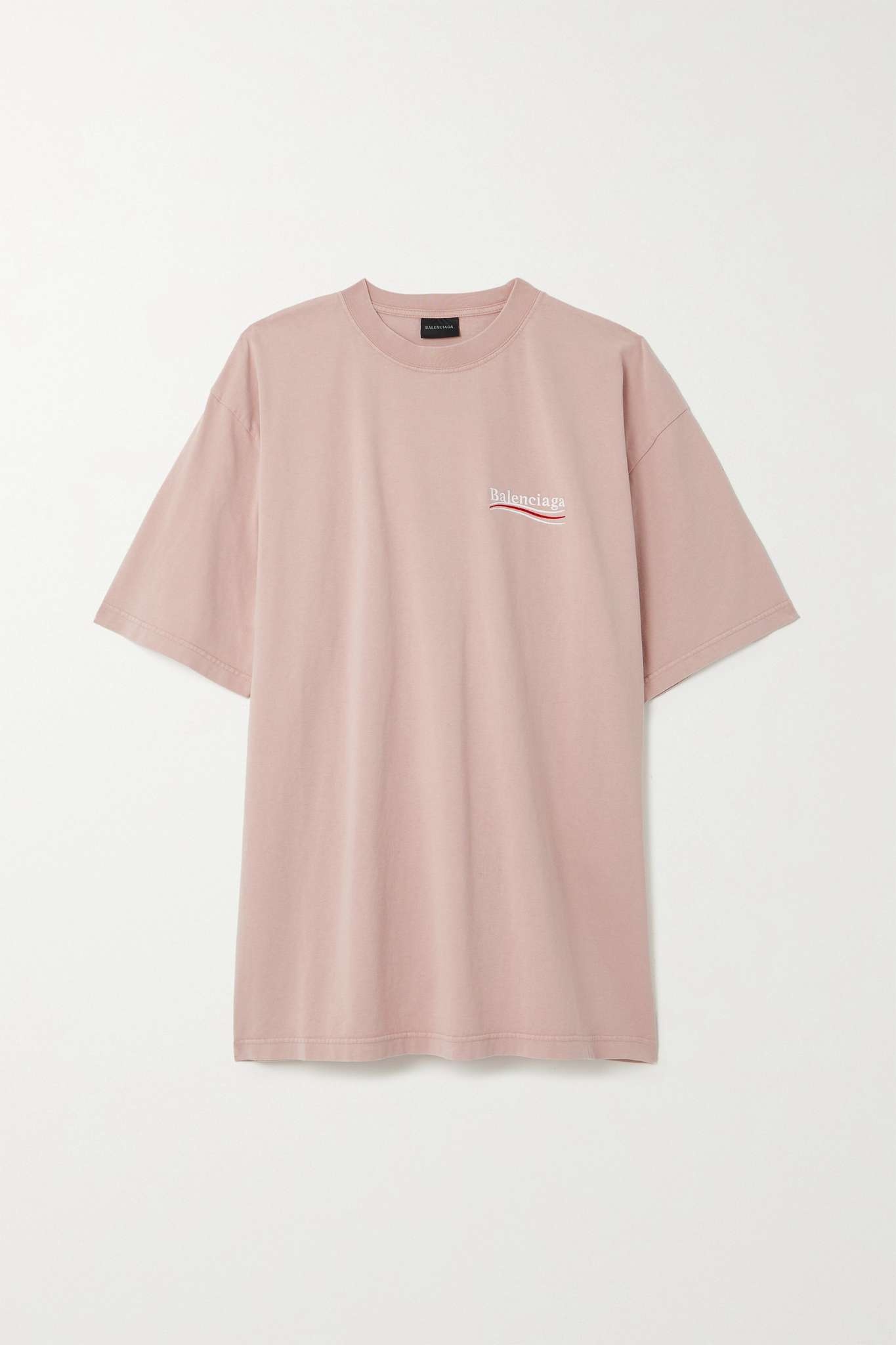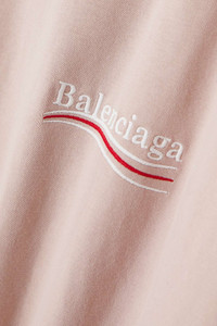 EDITORS'NOTES Balenciaga's T-shirt is embroidered with one of the brand's signature monikers that's inspired by political campaign posters. It's made from breathable cotton-jersey and is designed for an oversized fit. Team it with your favorite denim or loungewear. SIZE & FIT - Fits true to size, take your normal size - Designed for an oversized fit, cut to be worn very loose - Mid-weight, slightly stretchy fabric - Model is 180cm/ 5’11” and is wearing a size XSmall DETAILS & CARE - Pastel-pink cotton-jersey - Slips on - 100% cotton - Hand wash Large to size. See Size & Fit notes.