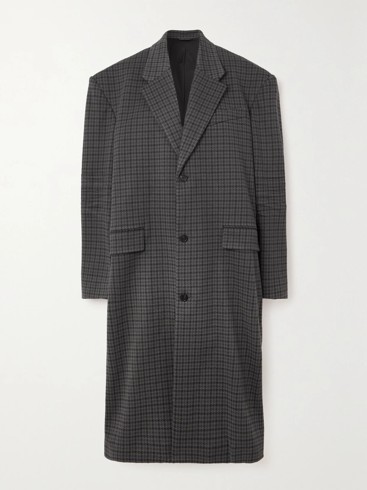 Honoring Cristobal Balenciaga's exceptionally proportioned designs, this oversized coat is so timeless and chic. Made from houndstooth cotton-blend, it's framed by exaggerated, padded shoulders and falls to a calf-grazing length. The tonal-gray colorway allows for infinite styling options.