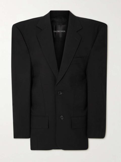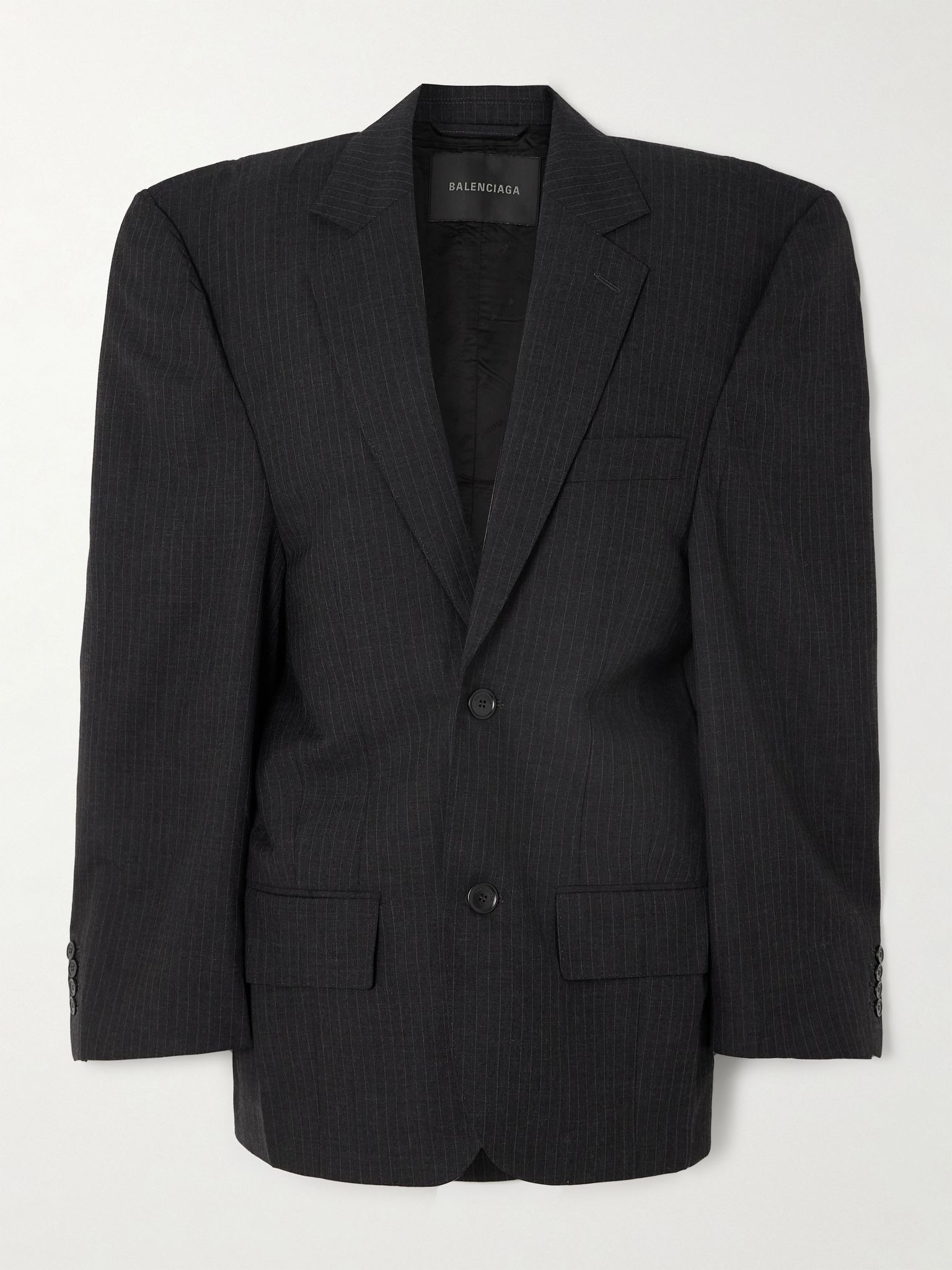 Loyal fans will instantly recognize the exaggerated proportions of this blazer as a Balenciaga signature. It has been tailored in Italy from pinstriped wool with notch lapels, square shoulders and elongated sleeves. Look closely and you'll see it has a subtly crinkled effect, which is totally intentional. Details & Care - Tonal-gray wool - Button fastenings through front - 100% wool - Dry clean
