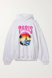 EDITORS'NOTES Balenciaga's hoodie is printed with a colorful graphic that unexpectedly illustrates Paris in a vibrant tropical setting. Made from plush cotton-jersey, it's has an oversized fit emphasized by dramatically dropped shoulders and a long ribbed hem. SIZE & FIT Balenciaga follows a height-based guide, please refer to below: - 0 = 5'1" (155 cm) - 1 = 5'3" (160 cm) - 2 = 5'5" (165 cm) - 3 = 5'7" (170 cm) - 4 = 5'11" (180 cm) - 5 = 6'0" (185 cm) - Fits true to size, however those who are between sizes should take the smaller size - Intended for an oversized fit, cut to be worn very loose - Long in the sleeves - Dropped shoulder seam - Mid-weight, slightly stretchy fabric - Model is 180cm/ 5’11” and is wearing the designer's size 4 DETAILS & CARE - Multicolored cotton-jersey - Slips on - 100% cotton - Machine wash