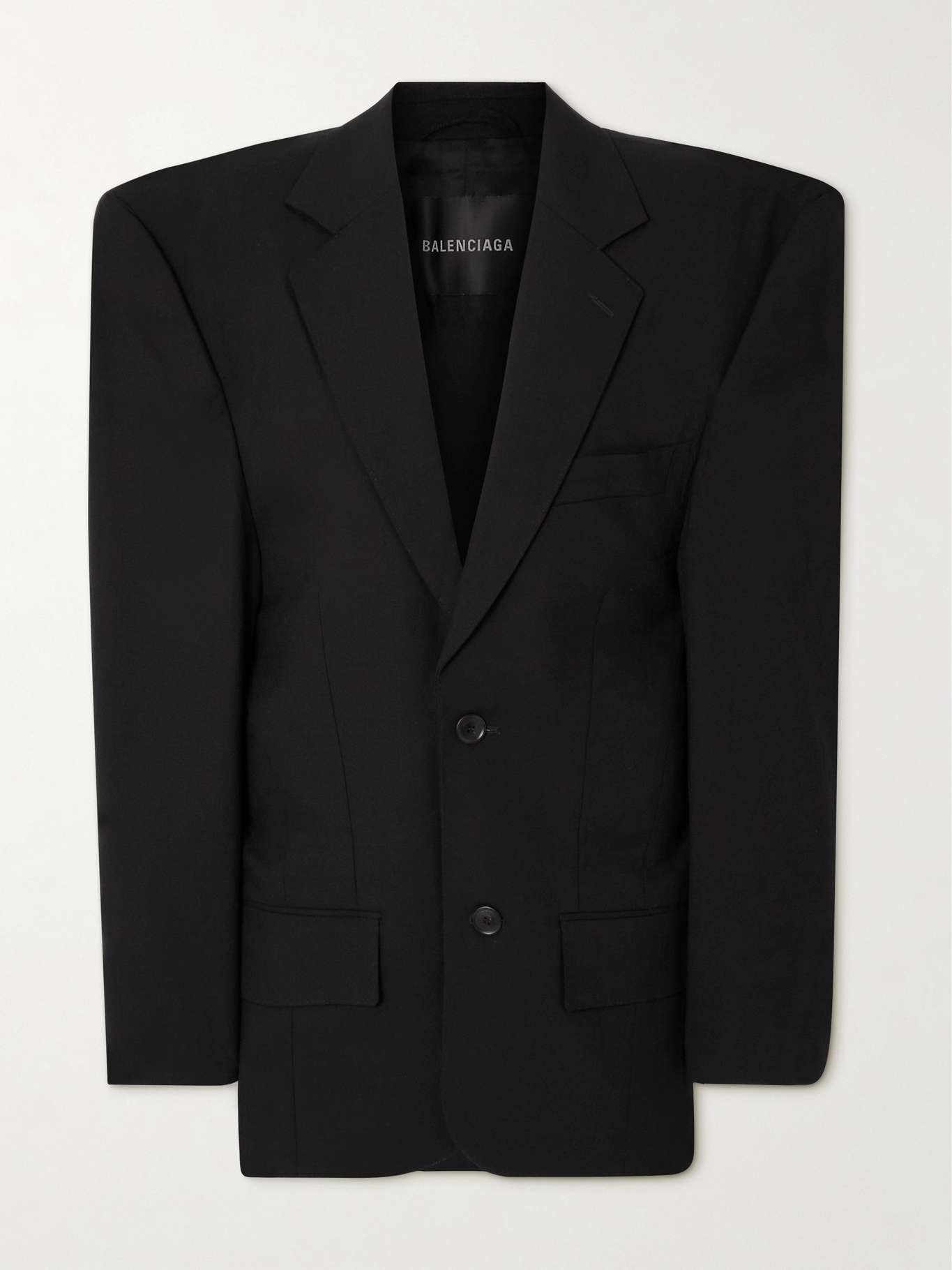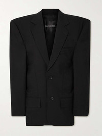 EDITORS'NOTES Balenciaga's blazer is cut in the boxy, oversized silhouette the label has been known for since its inception. It's tailored from wool with a double-button fastening. SIZE & FIT Balenciaga follows a height-based guide, please refer to below: - 0 = 5'1" (155 cm) - 1 = 5'3" (160 cm) - 2 = 5'5" (165 cm) - 3 = 5'7" (170 cm) - 4 = 5'11" (180 cm) - 5 = 6'0" (185 cm) - Fits true to size, take your normal size - Designed for an oversized fit, cut to be worn very loose - Internal shoulder pads - Mid-weight, non-stretchy fabric - Model is 177cm/ 5'10" and is wearing the designer's size 2 - Bust: 82cm/ 32" - Waist: 66cm/ 26" - Hip: 90cm/ 36" DETAILS & CARE - Black wool - Button fastenings through front - 100% wool, lining: 100% cupro - Dry clean