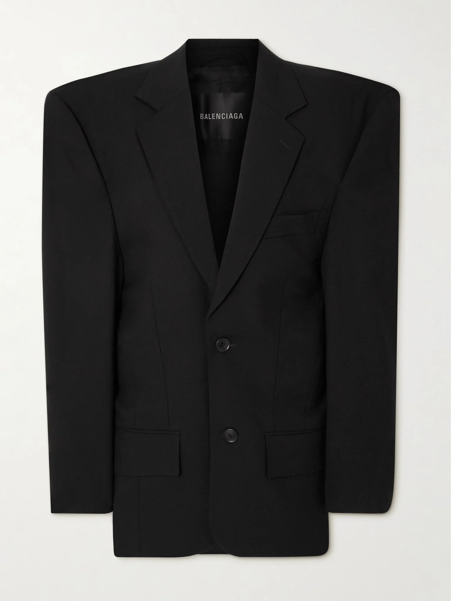 Balenciaga's blazer is cut in the boxy, oversized silhouette the label has been known for since its inception. It's tailored from wool with a double-button fastening. Details & Care - Black wool - Button fastenings through front - 100% wool, lining: 100% cupro - Dry clean