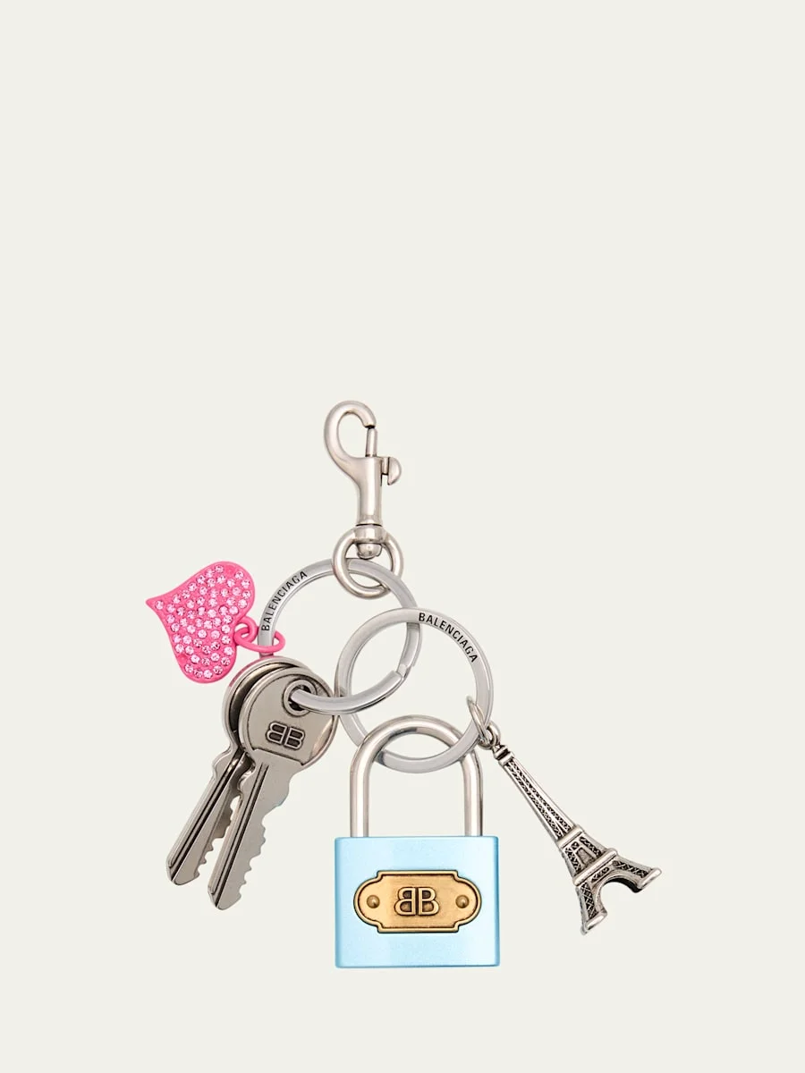 Balenciaga padlock metal charms keyring Approx. 3.1"H x 7"W Brass/zamak/stainless steel Made in Italy