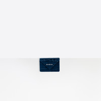 Papier Mini Wallet in dark blue crocodile embossed calfskin PRODUCT DETAILS Dimensions: W 3.9 inches H 2.7 inches D 1.2 inches Composition: 100% Lambskin - Crocodile embossed calfskin - Envelope design - Mini flap wallet function - Snapped flap closure - Balenciaga embossing on front - 1 snapped bill pocket - 3 card slots - 1 snapped coin purse - Made in Italy - Wipe with a soft and clean cloth - The item comes with a Balenciaga dustbag and box