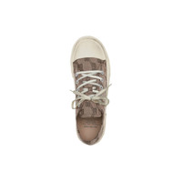 Paris Low Top Sneaker in dark beige and brown BB Monogram jacquard and white rubber PRODUCT DETAILS • BB Monogram cotton and rubber • Sneaker • Washed effect • Balenciaga logo printed at the edge of the toe • Embossed size at back • 5 eyelets lace-up vamp • Vulcanized sole • Made in China • Wipe with a soft cloth Material: 68% polyester, 16% cotton, 16% polyamide