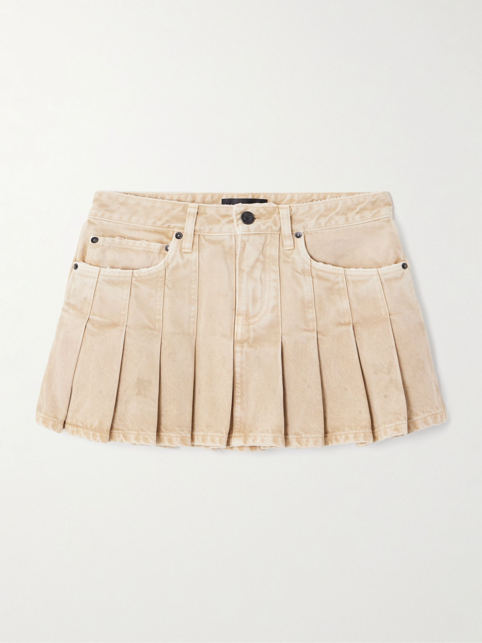 Pleated denim mini skirt Beige