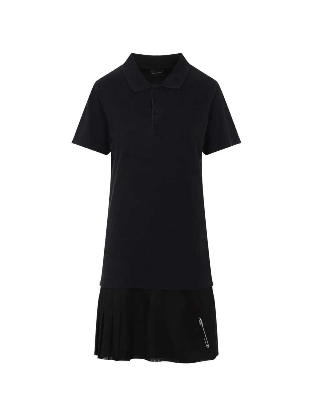 pleated-hem dress Highlights - Black - Embroidered logo - Polo collar - Short sleeves - Pleated hem - Safety-pin embellishment Imported Composition Cotton 100% Washing instructions Read Manufacturer Guidelines