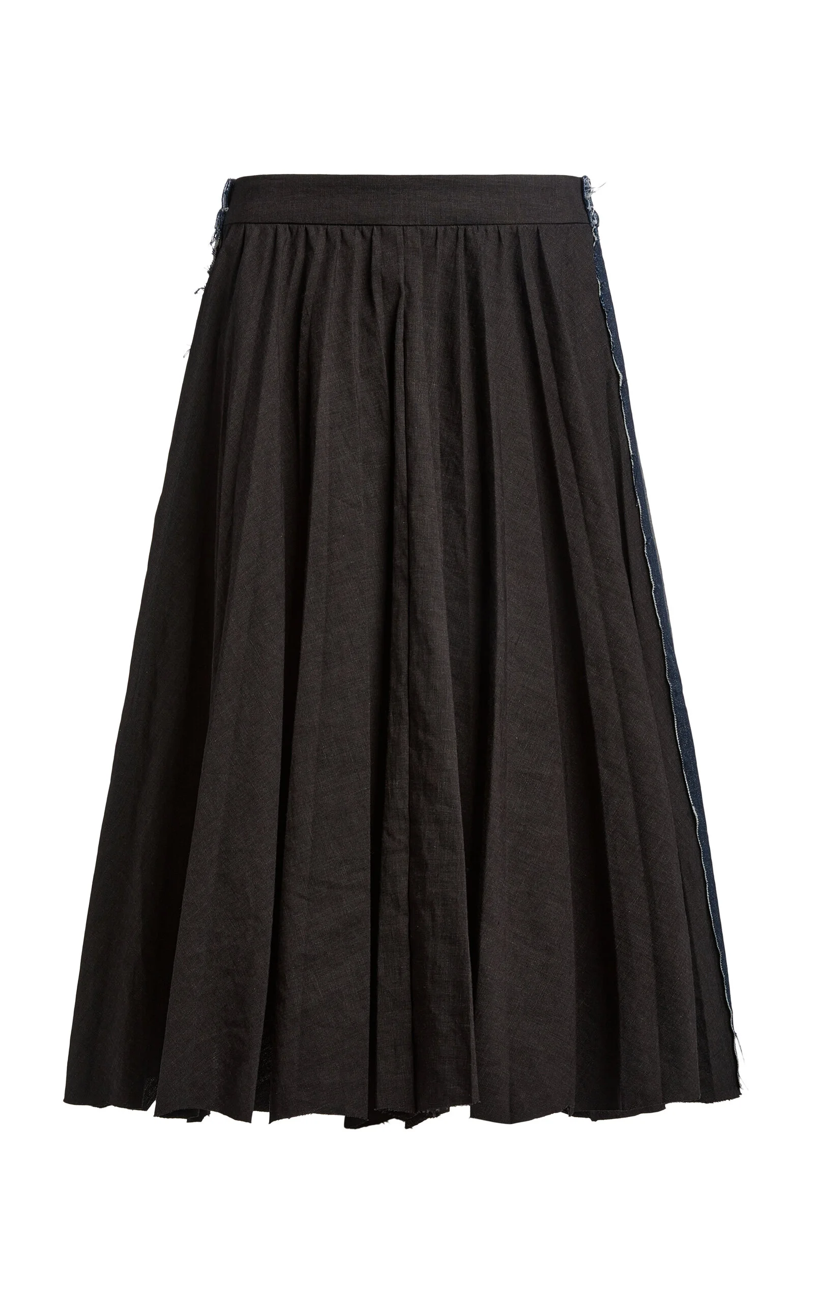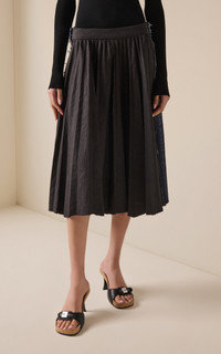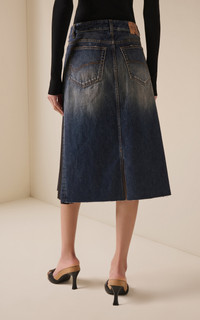Experimental and minimalistic by design, Balenciaga is also renowned for its uncompromising standard and avant-garde creativity. With Creative Director Georgian designer Demna Gvasalia at its helm, the brand continues to live and breathe Balenciaga’s inherent elegance, balanced with the designer’s edgy, urban aesthetic. Constructed with neutral merino-wool suiting and ramie denim, this low-rise midi exhibits the best of both worlds. While the front has traditional gathers and subtle pleats, the back showcases typical workwear stitches and frayed edges. Continue playing with classic silhouettes and style with an oversized jacket. PRODUCT DETAILS - Pre-Fall ‘25 - Zip and button fastening - Composition: 74% wool, 17% ramie, 9% mohair - Dry clean - Made in Italy