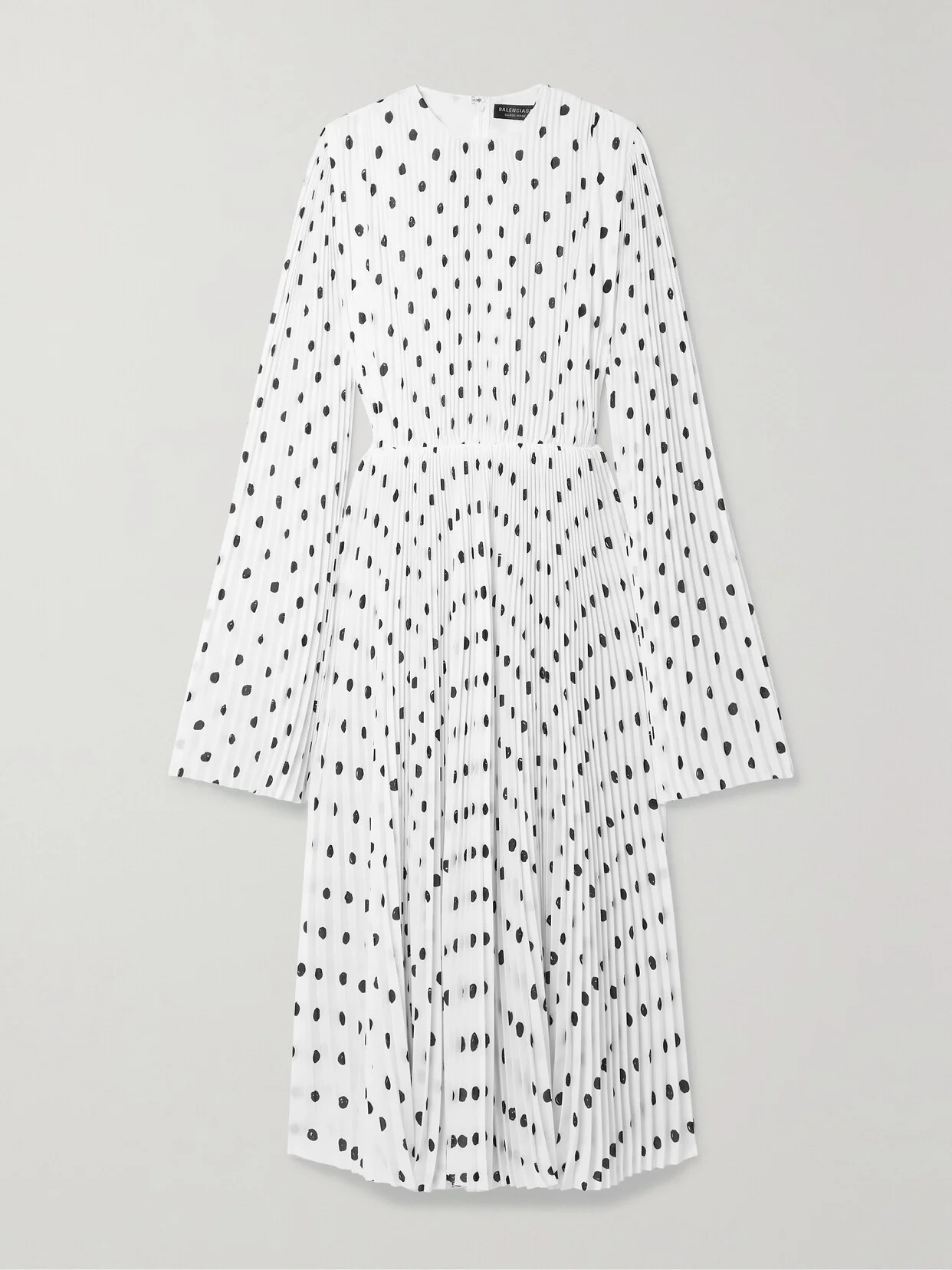 Balenciaga's midi dress is patterned with monochromatic polka-dots for a retro feel. Cut from lightweight crepe, it's sharply pleated throughout for beautiful texture and movement and has dramatic sleeves and an elasticated, nipped-in waist to define your shape. Style yours with tights and ankle boots.