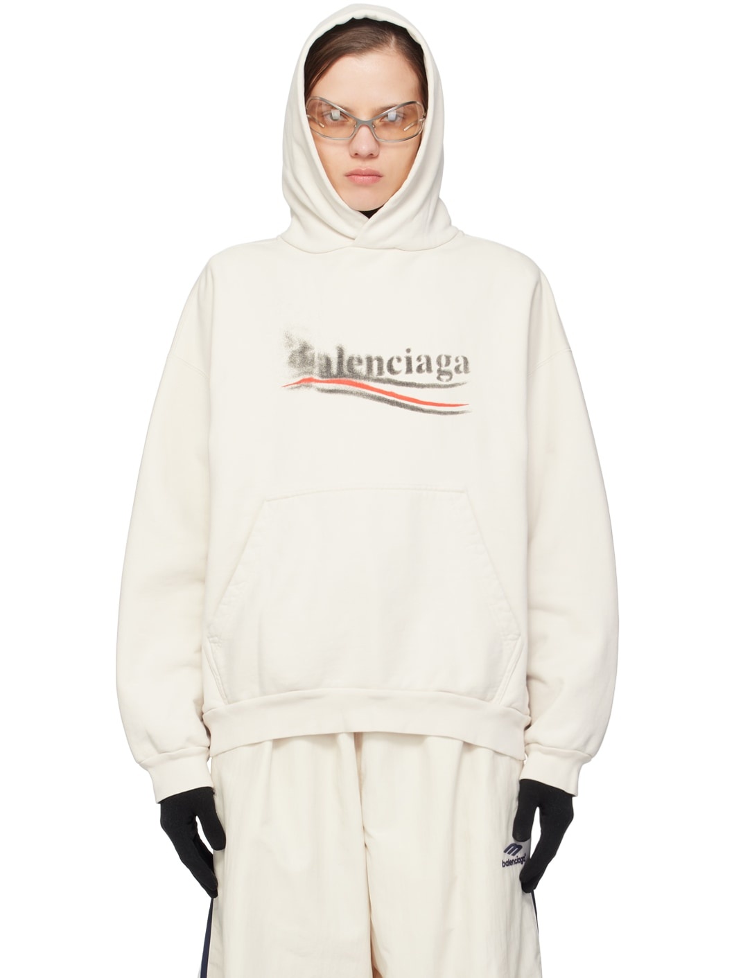 French terry hoodie. · Logo graphic printed at front · Kangaroo pocket · Rib knit hem and cuffs · Dropped shoulders Supplier color: Ecru/Black