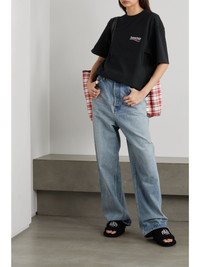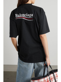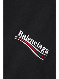 Balenciaga's T-shirt is embroidered with one of the brand's signature monikers that's inspired by political campaign posters. It's made from breathable cotton-jersey and designed for an oversized fit. Team it with your favorite denim or loungewear. Size & Fit - Fits true to size, take your normal size - Designed for an oversized fit, cut to be worn very loose - Mid-weight, slightly stretchy fabric - Model is 180cm/ 5’11” and is wearing a size XSmall Details & Care - Black cotton-jersey - Slips on - 100% cotton - Hand wash
