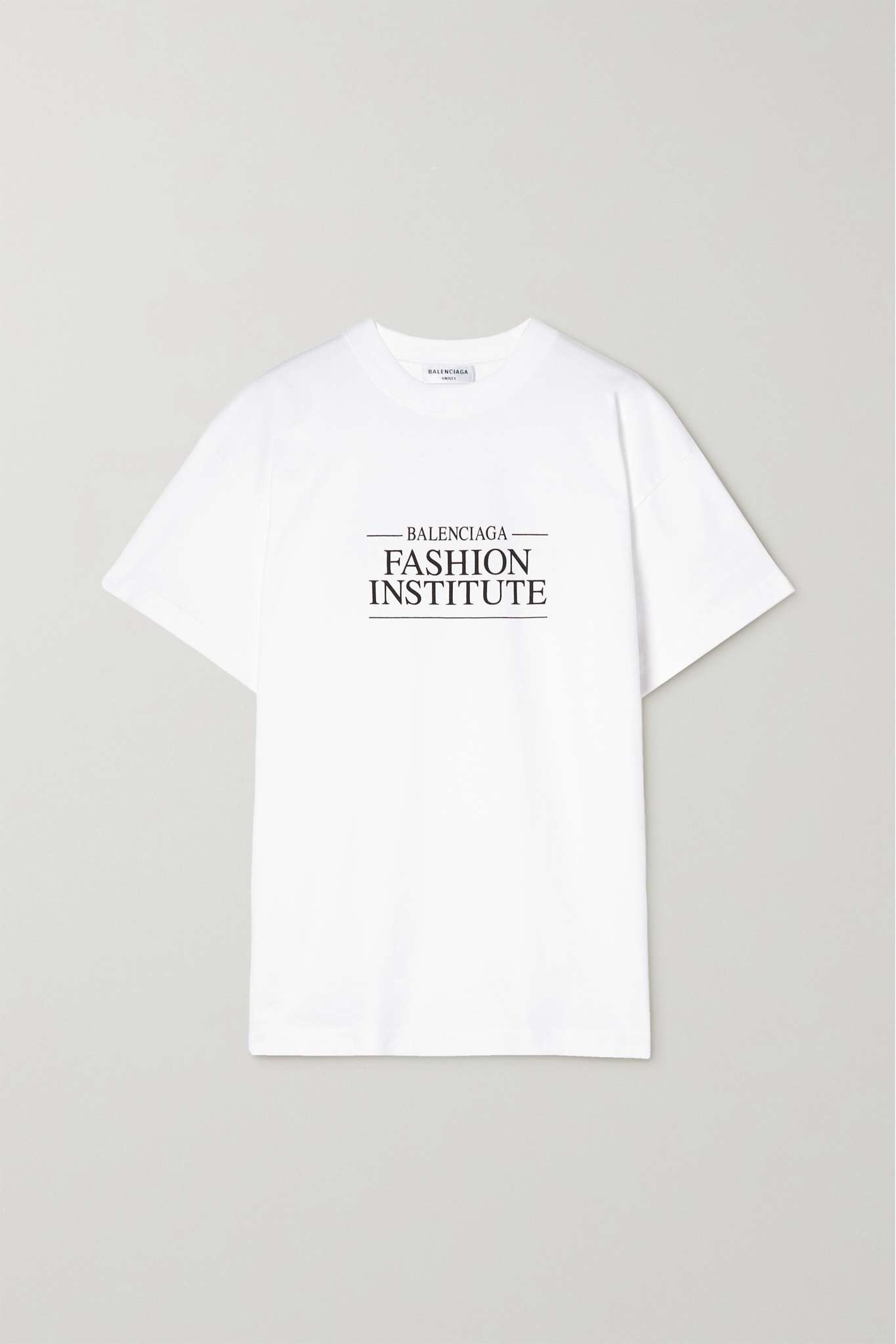 EDITORS'NOTES Balenciaga's Artistic Director, Demna, has brought an innovative and playful approach to every design. This white cotton-jersey T-shirt has a contrasting black print on the front and back and has a classic crew neckline. Tuck yours into the brand's logo-centric pants. SIZE & FIT - Fits true to size, take your normal size - Cut for a relaxed fit - Mid-weight, slightly stretchy fabric - Model is 177cm/ 5'10" and is wearing a size Small DETAILS & CARE - White and black cotton-jersey - Slips on - 100% cotton; trim: 96% cotton, 4% elastane - Machine wash