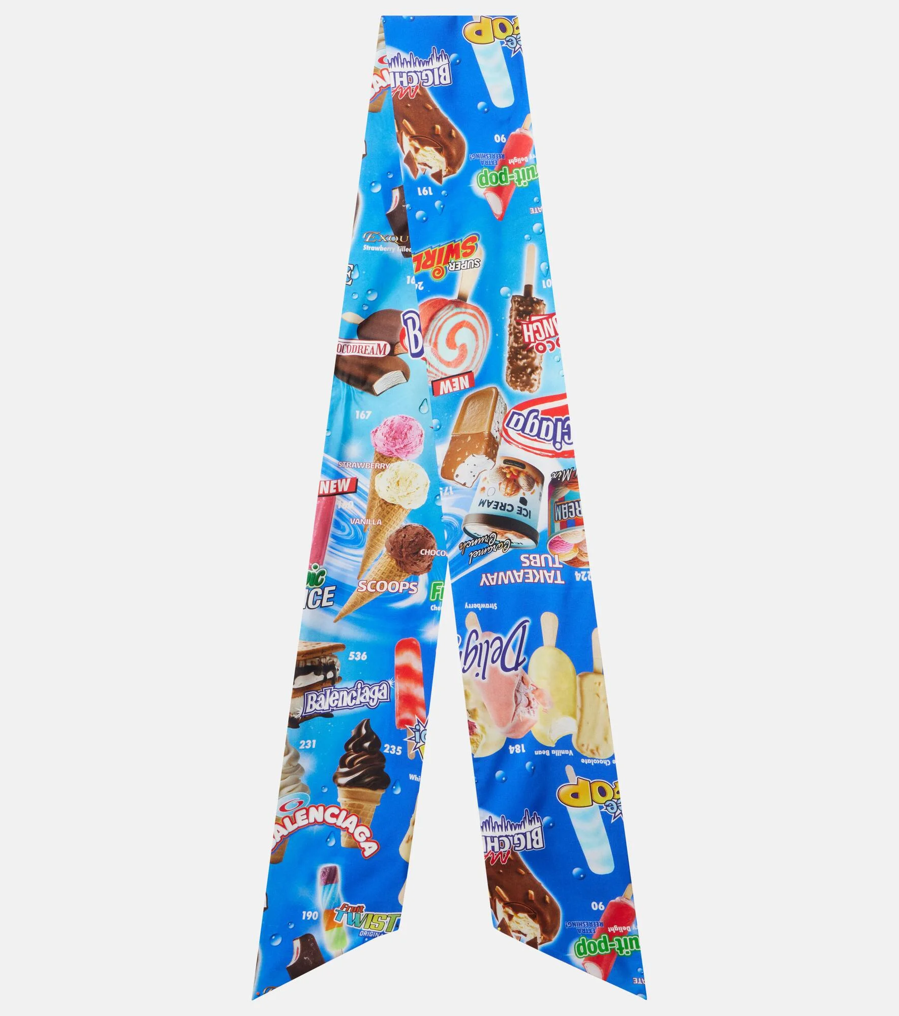 Innovation is at the heart of Balenciaga, which proudly presents its modern interpretation of fashion in every piece. This scarf is expertly crafted in Italy from pure silk and boasts a printed ice cream motif. Product Details - Material: 100% silk - Care instructions: dry clean - Made in Italy - Designer color name: Blue - Item color: blue, multicolor - Item number: P01121171 Size & Fit - Length 115cm-45.5" - Width 15cm-6"