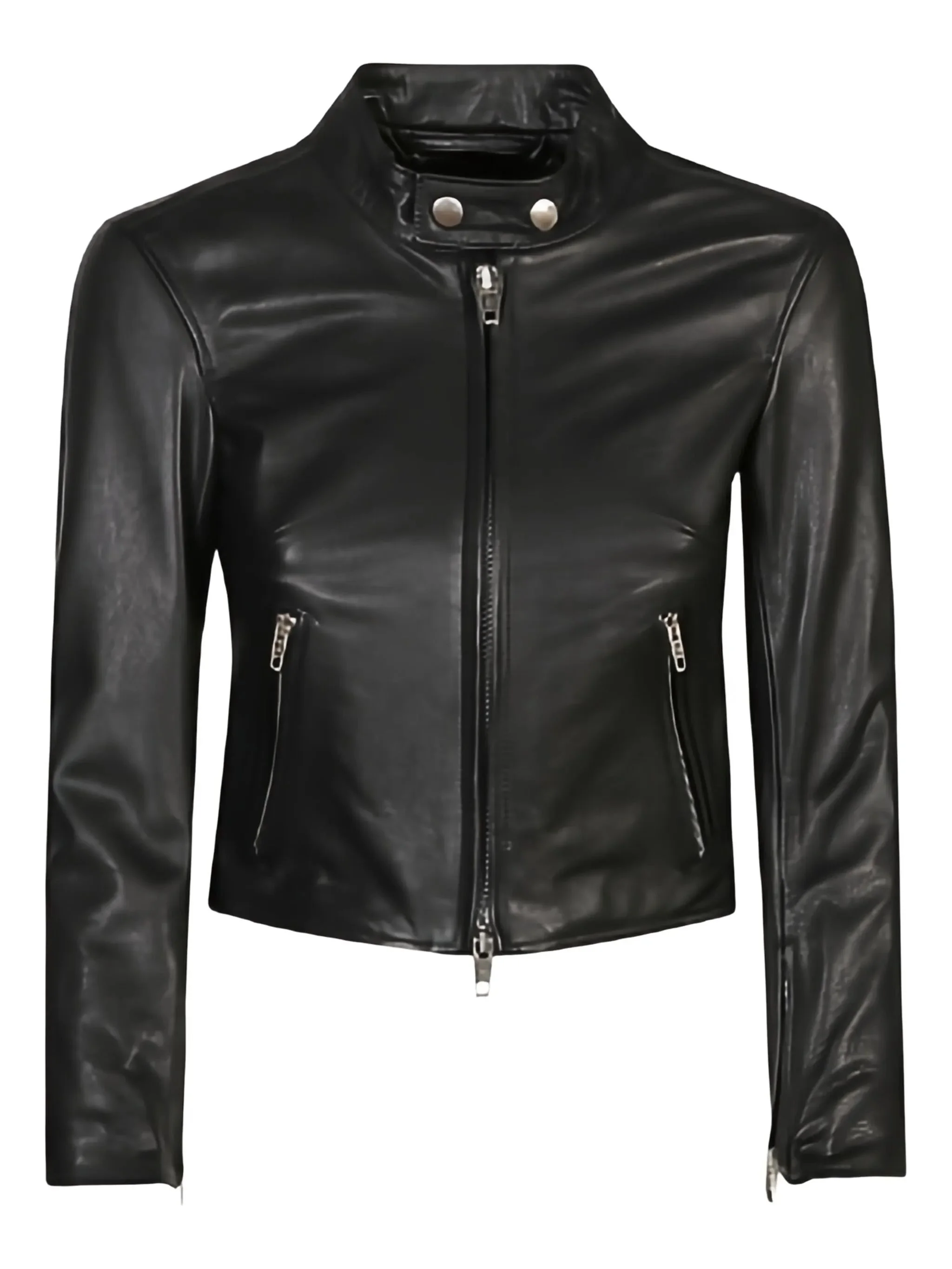 black calf leather press-stud fastening collar front two-way zip fastening long sleeves with cuff zips two side zip-fastening pockets cropped straight hem quilted lining - Color: BLACK - Made in: Italy - Designer Style ID: 775707 TOS08 1000 Composition and care Lining Composition Silk: 60.0%, Lining Composition Cotton: 100.0%, Lining Composition Viscose: 100.0%, Outer Composition Bos Taurus: 100.0%, Lining Composition Polylactic Acid (pla): 100.0%