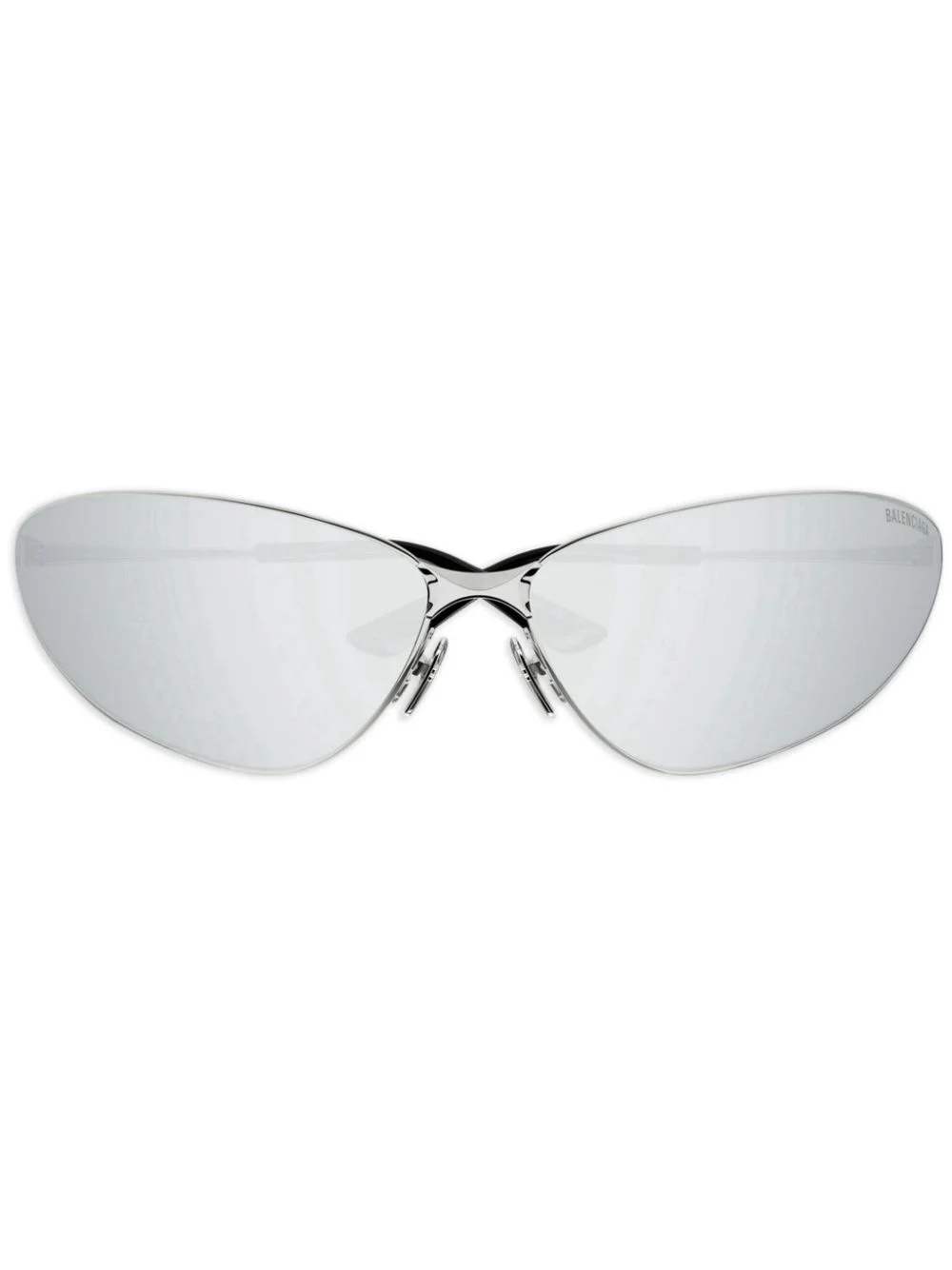 Razor cat-eye sunglasses Balenciaga’s Razor sunglasses are a futuristic take on cat-eye styles. They sleek and slender metal frames are fitted with reflective lenses that offer full UV protection while the nose pads adjust for a custom fit. Highlights - Silver-tone - Metal - Acetate - Cat-eye frame - Lens decal - Mirrored lenses - Uv-protective lenses - Nose pads - Straight arms - Curved tips - These glasses come with a protective case. Made in Italy Composition Metal 100%, Acetate 100% SIZE & FIT Measurement Arm Length 4.33 in(11 cm) Bridge Width 0.55 in(1.4 cm) Lens Diameter 3.66 in(9.3 cm) Total Width 6.29 in(16 cm)