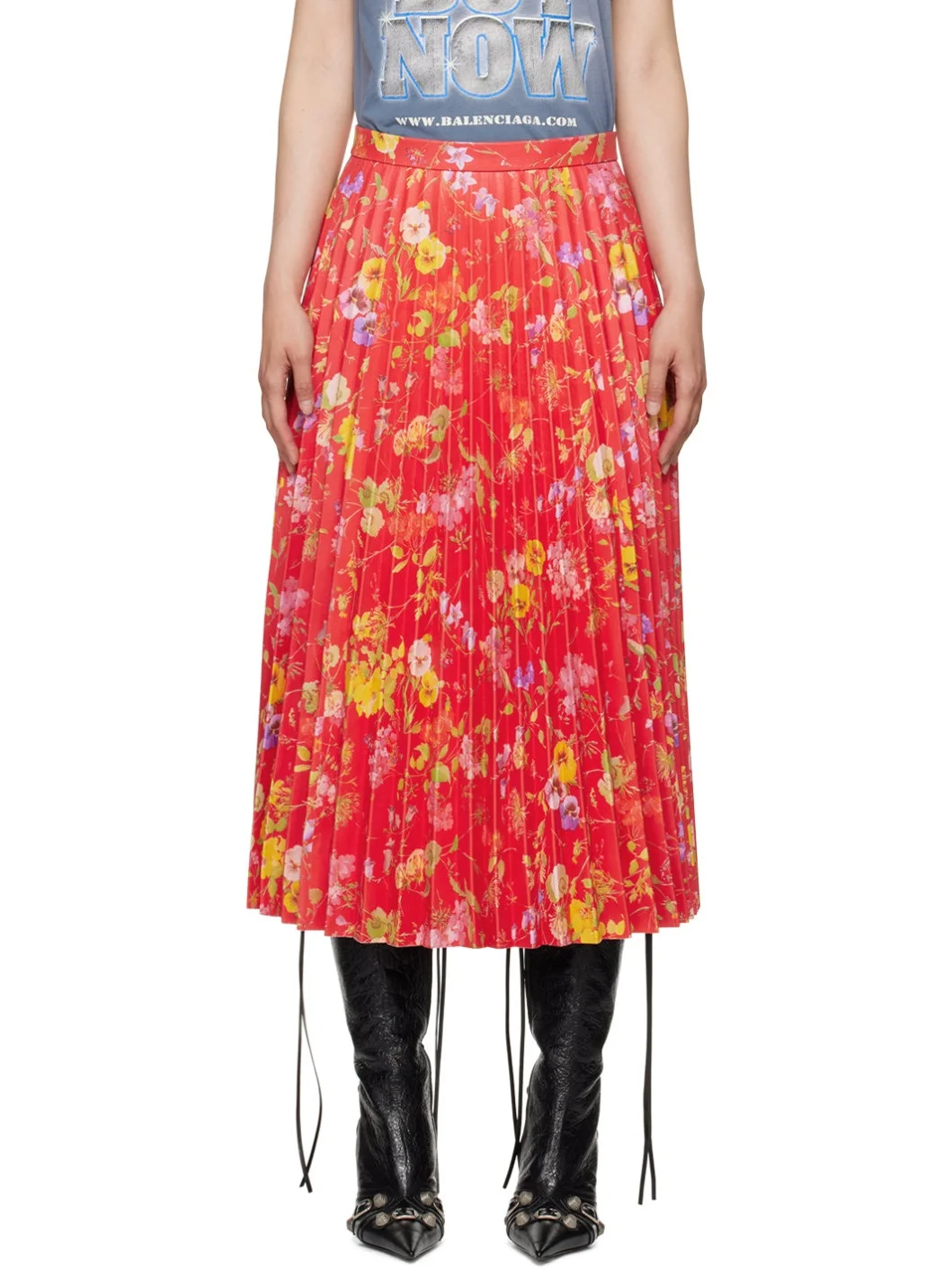 Grained lambskin skirt. Floral pattern and pleats throughout. · Zip closure at side seam · Full buffed lambskin lining Supplier color: Red 100% lambskin. Made in Italy 232342F092001