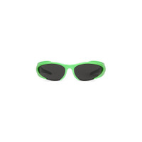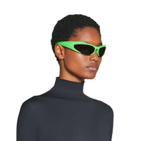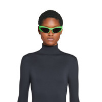 Reverse Xpander Rectangle Sunglasses in neon green bio-based injected nylon with grey lenses are from the look 51 of the Balenciaga's Spring 23 Collection, NYC Show. PRODUCT DETAILS • Temple length: 4,5 inch • Bridge length: 0,5 inch • Bio-based injected nylon frame and temples (65% bio-based) • Rectangle shape • Standard fit • Balenciaga logo engraved and enameled on left temple • Lens material: Nylon • Lens category: 3 • 100% UVA/UVB protection • Not suitable for optical conversion • Made in Italy • Wipe with a soft cloth • BB0253S Material: 100% nylon