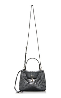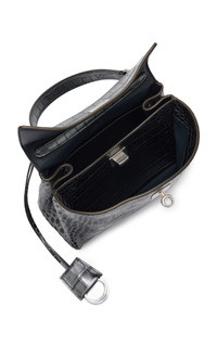 Renowned for their sleek, fluid lines and statement-making garnishes, Balenciaga’s meticulously crafted accessories always have the right amount of edge. The 'Rodeo' top handle bag has a gusseted two-compartment design made from croc-embossed leather. Though it has two optional turn-lock closures, it is designed to be styled slouchy. Keep your phone or wallet close at hand in the back slip pockets. PRODUCT DETAILS - Removable shoulder strap - Turn-lock fastening - Composition: leather - Designer color: Gunmetal - Made in Italy
