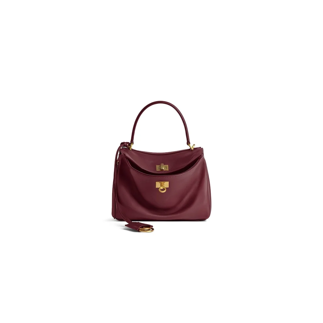 Rodeo Mini Handbag in dark burgundy smooth calfskin, aged-gold hardware PRODUCT DETAILS • Dimensions: L9 x H3,9 x W3,3 inch • Smooth calfskin • Handbag • One handle hand carry (drop: 4,7 inch) • Removable crossbody strap (drop: 27,2 inch) • Removable cloche cles with two split rings • Aged-gold hardware • Turn lock closure • Wide front pocket • 1 main compartment • 2 flat pockets at back • Side snaps • 4 brass feet • Nappa lambskin lining • Made in Italy Material: calfskin