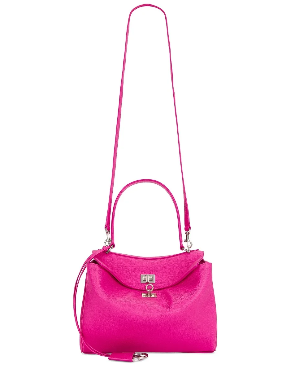 Details - Leather exterior and lining - Flap top with dual gold-tone turn lock closures - One main compartment - Two exterior flat pockets - Detachable leather cloche cl?s with two split rings - Side snap closures - 4 brass feet - Integrated leather shoulder strap with detachable leather strap - Measures approx 23 cm W x 17 cm H x 10 cm D - Shoulder strap with a 69 cm drop - Top handle with a 12 cm drop - Made in Italy - Our Style No. BALF-WY1574 - Manufacturer Style No. 789779-2ABV6-5639