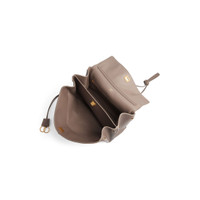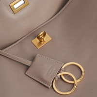 Rodeo Handbag Medium in taupe smooth calfskin, aged-silver hardware PRODUCT DETAILS • Dimensions: L13,8 x H9,2 x W4,3 inch • Smooth calfskin • Handbag • One handle (drop: 8,1 inch) • Removable shoulder strap (drop: 22,6 inch) • Removable cloche cles with two split rings • Aged-silver hardware • Turn lock closure • Wide front pocket • 1 main compartment • 1 inner zipped pocket • 2 flat pockets at back • Side snaps • 4 brass feet • Nappa lambskin lining • Made in Italy Material: calfskin