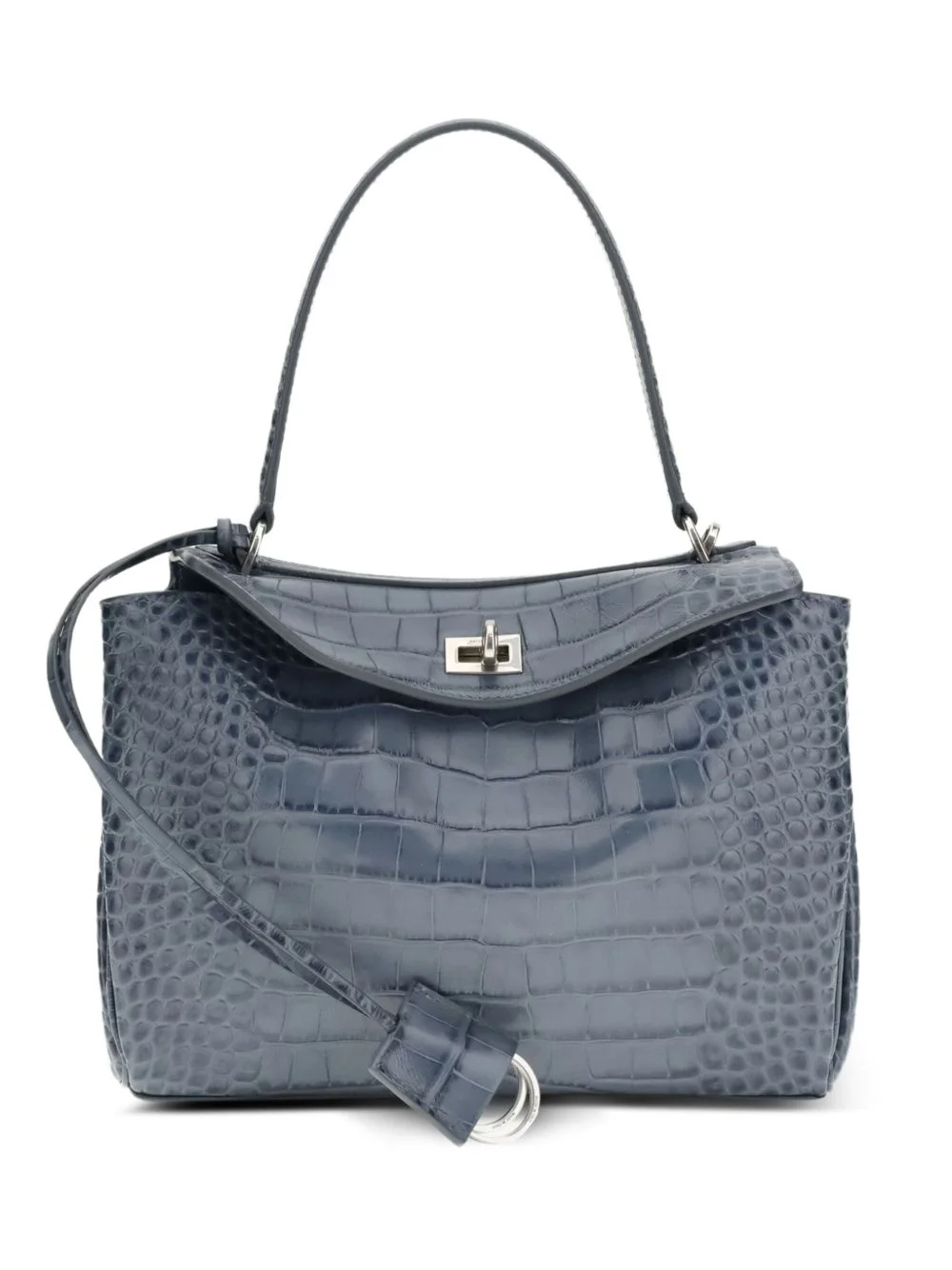 Rodeo small crocodile-effect tote bag Highlights - Blue - Crocodile-effect processing - Top handle - Removable shoulder strap - Removable key ring - Antiqued silver hardware - Brass feet Made in Italy Composition Outer: Bos Taurus 100% SIZE & FIT Measurement DEPTH 1.53 in(3.9 cm) HEIGHT 3.11 in(7.9 cm) WIDTH 4.17 in(10.6 cm)