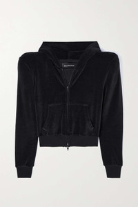 EDITORS'NOTES Balenciaga's hoodie is padded to exaggerate the shoulders – experimental silhouettes have long been a calling card for the brand. Cut from plush cotton-velvet, it's cropped at the hem and zips neatly through the front. For the full effect, team yours with the matching track pants and heels. SIZE & FIT - Fits true to size, take your normal size - Designed for a close fit - Internal shoulder pads - Cropped length - Mid-weight, stretchy fabric - Model is 180cm/ 5’11” and is wearing a size XSmall DETAILS & CARE - Black cotton-velvet - Two-way zip fastening through front - 100% cotton
