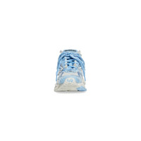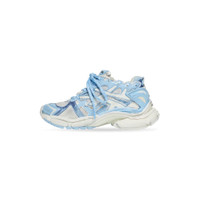 Runner Sneaker in light blue and off-white mesh and nylon PRODUCT DETAILS • Leather free • Sneaker • Mesh and nylon • Worn-out effect • Printed size at the edge of the toe • Embossed size at back • Runner logo printed on exterior • Balenciaga logo embroidered on the tongue • Balenciaga logo at the back of the heel • Back pull-on tab • Made in China • Wipe with a soft cloth Material: 65% polyurethane, 35% polyester