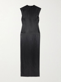 Frayed edges give Balenciaga’s dress a deliberately undone look. Cut from lustrous satin, it has a loose shape and midi length. Wear it with the label’s pumps. Size & Fit - Fits true to size, take your normal size - Those with a large bust may wish to take the next size up - Intended for a slightly loose fit - Lightweight, fluid, non-stretchy fabric - Model is 177cm/ 5'10" and is wearing a FR 36 Model measurements: - Bust: 80cm/ 31.5" - Waist: 60cm/ 23.5" - Hip: 89cm/ 35" Details & Care - Black satin - Concealed hook and zip fastening at back - 100% acetate - Dry clean