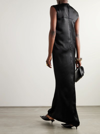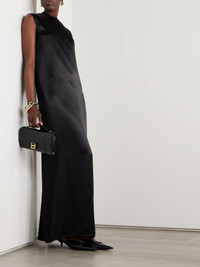 Frayed satin maxi dress Black