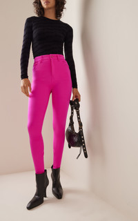 Experimental and minimalistic by design, Balenciaga is also renowned for its uncompromising standard and avant-garde creativity. With Creative Director Georgian designer Demna Gvasalia at its helm, the brand continues to live and breathe the house's inherent elegance, balanced with the designer’s edgy, urban aesthetic. These stretch leggings feature belt loops and front pockets with zippers long the cuffs. Wear yours with chunky sneakers and a cropped top for a cool off-duty look. PRODUCT DETAILS - Zip and button fastening along front - Composition: 80% polyamide, 20% elastane - Dry clean - Made in France SIZE & FIT - Our model is 175cm/ 5'9" and wearing a FR 34 - Fits true to size, our fit specialist recommends taking your normal size - Designed for a slim fit