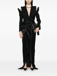 wrap maxi skirt Highlights - Black - Side button fastening - Side tie fastening - Unlined Made in Italy Composition Silk 56%, Cupro 44% SIZE & FIT Model measurements Height 5 ft 10 in(1.78 m) Bust/Chest 33.85 in(86 cm) Hips 36.61 in(93 cm) Waist 26.77 in(68 cm) Measurement HIPS 30 in(76.2 cm) LENGTH 55 in(139.7 cm) WAIST 24.01 in(61 cm) FittingInformation Designed for a wraparound style that can be adjusted to your preference Particularly long in length; consider your own measurements Made from a midweight non-stretch fabric