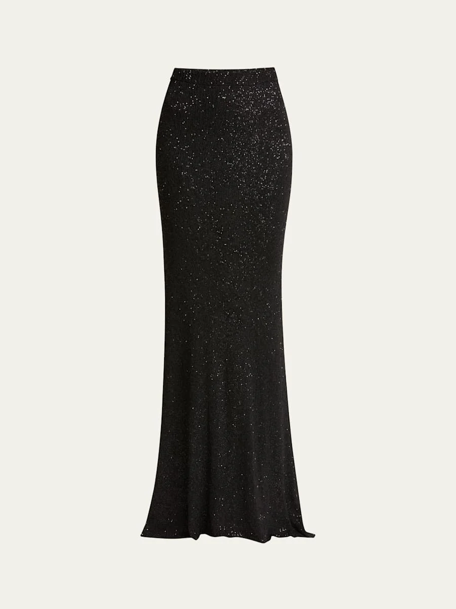 Balenciaga shiny knit skirt with sequin embellishment Elasticated waistband Pencil silhouette Flared hem Full length Pull-on style Nylon/polyamide Dry clean Made in Italy Model is 5'10"/177cm. Online Inquiries: BGS21_BABW2| Store Inquiries: #4946350