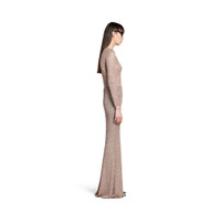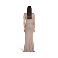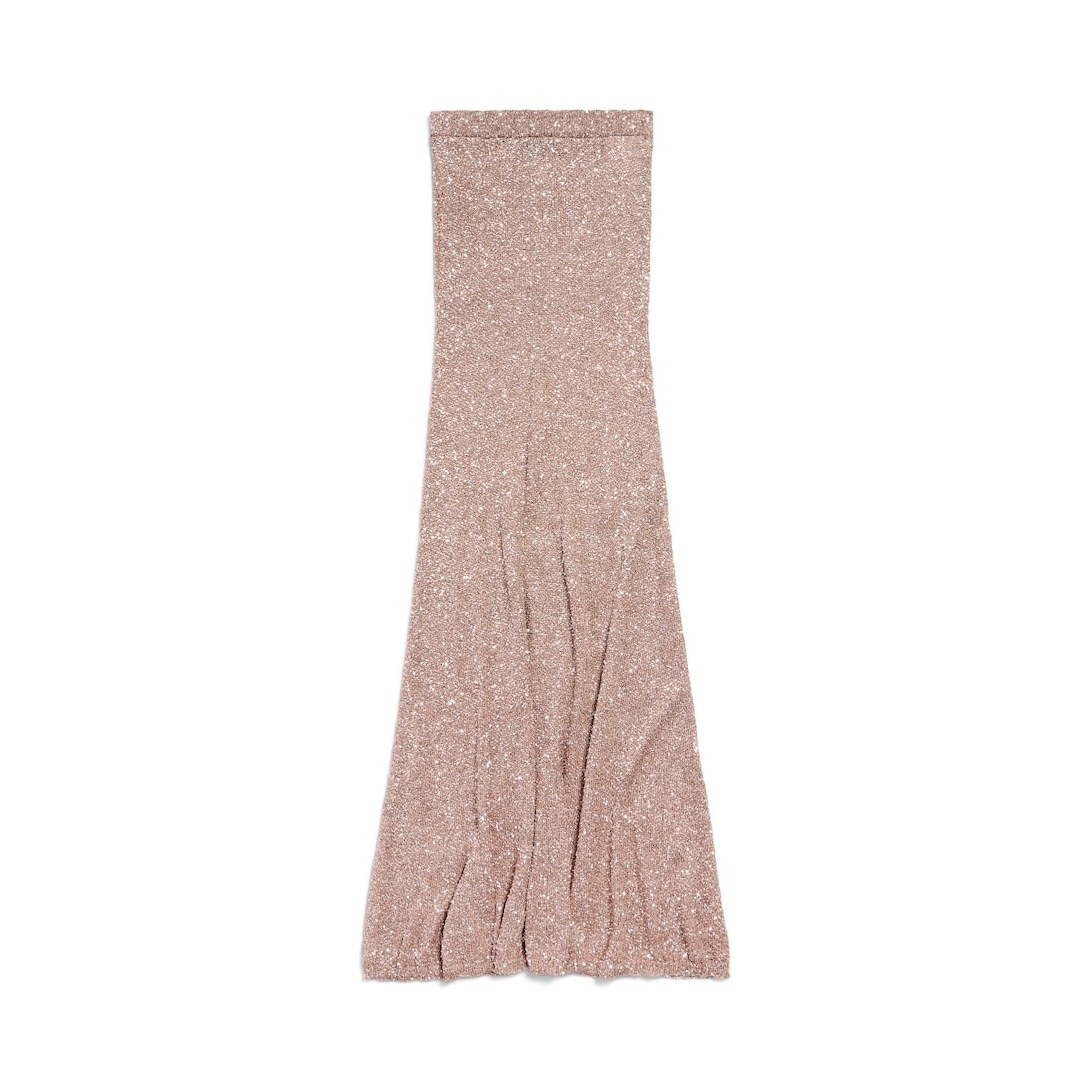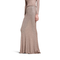 Maxi Skirt in light brown and silver shiny viscose sequins knit PRODUCT DETAILS • Shiny viscose sequins knit • Fitted • Mid-waist • Elasticated waistband • Ribbed trims • Flared hem • Maxi length • Made in Italy Main material: 100% polyamide