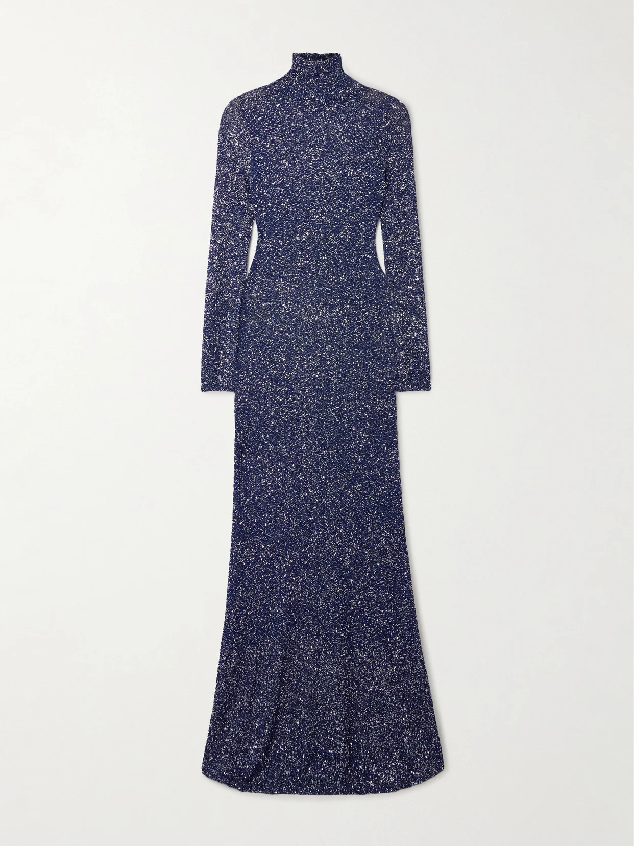 Sequined Metallic-knit Turtleneck Maxi Dress